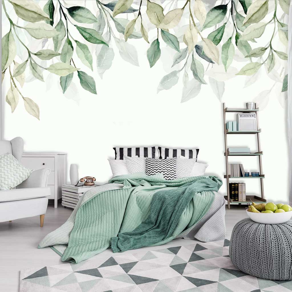 Akvarell zöld függő levélmintás fotótapéta 208x146cm