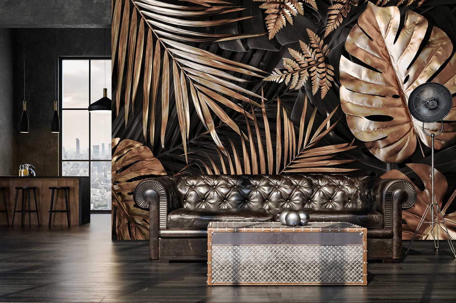 Arany monstera levél mintás vlies fotótapéta