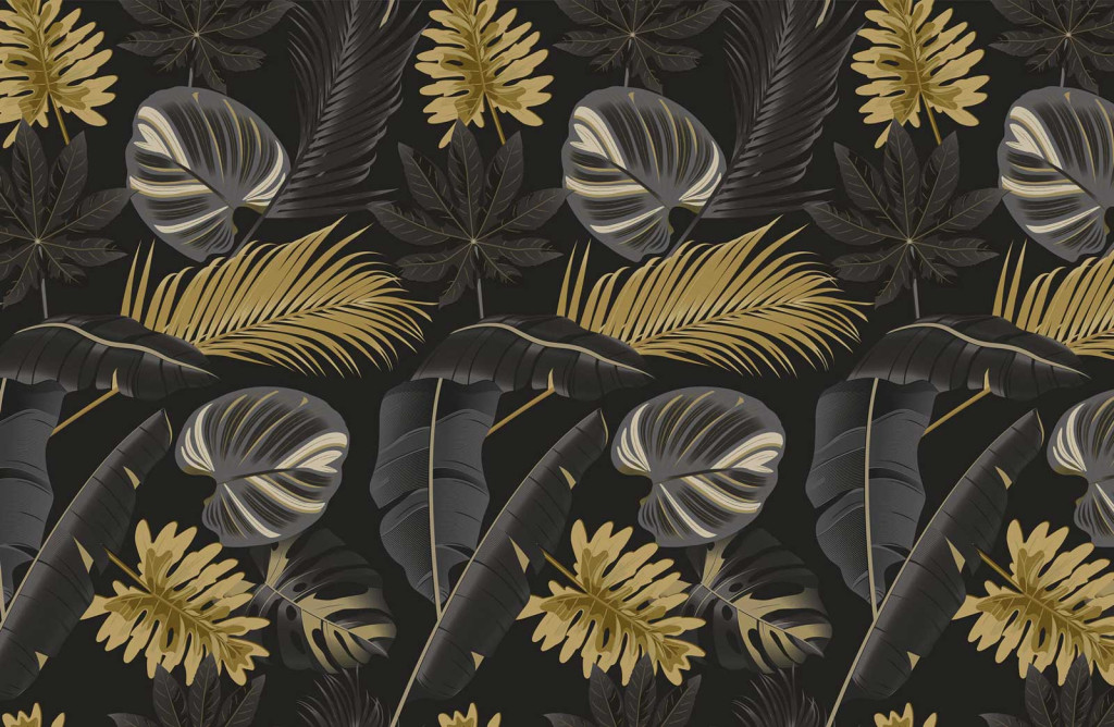 Fekete arany trópusi levél mintás fotótapéta 312x219cm