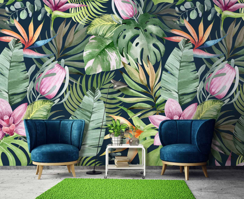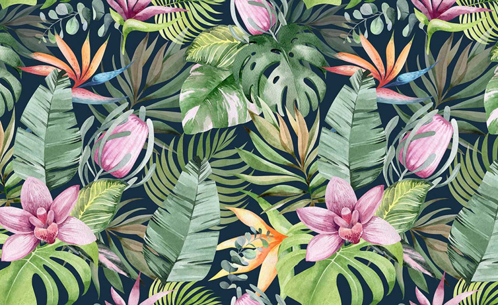 Trópusi levél és virágmintás fotótapéta 368x254cm