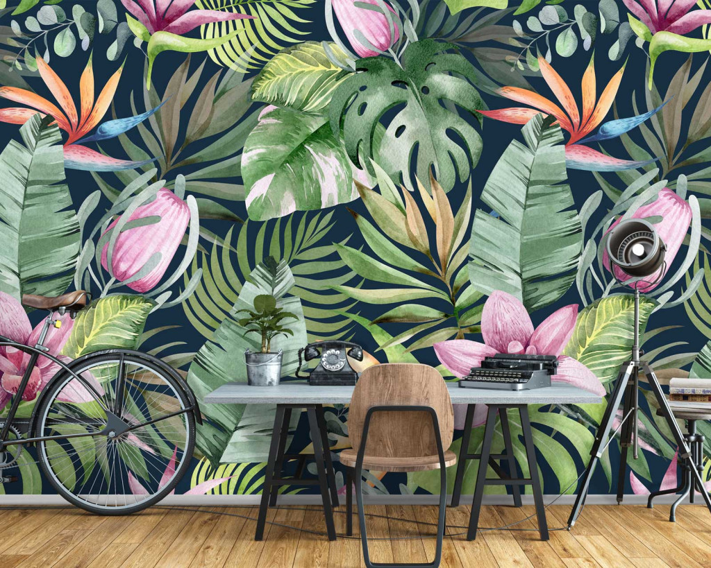 Trópusi levél és virágmintás fotótapéta 350x250cm