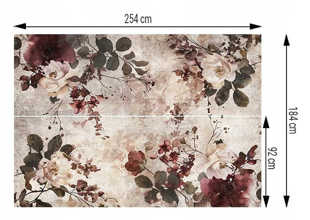 A kép 254 cm széles és 184 cm magas - 2 db 92x254 cm-es részből áll. A csomag tartalmazza a felrakási útmutatót és a tapétaragasztót.
