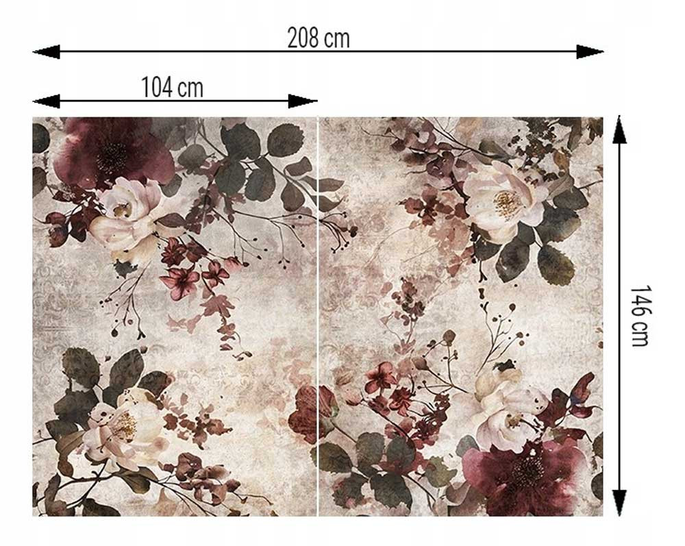 A kép 208 cm széles és 146 cm magas - 2 db 104x146 cm-es részből áll. A csomag tartalmazza a felrakási útmutatót és a tapétaragasztót.